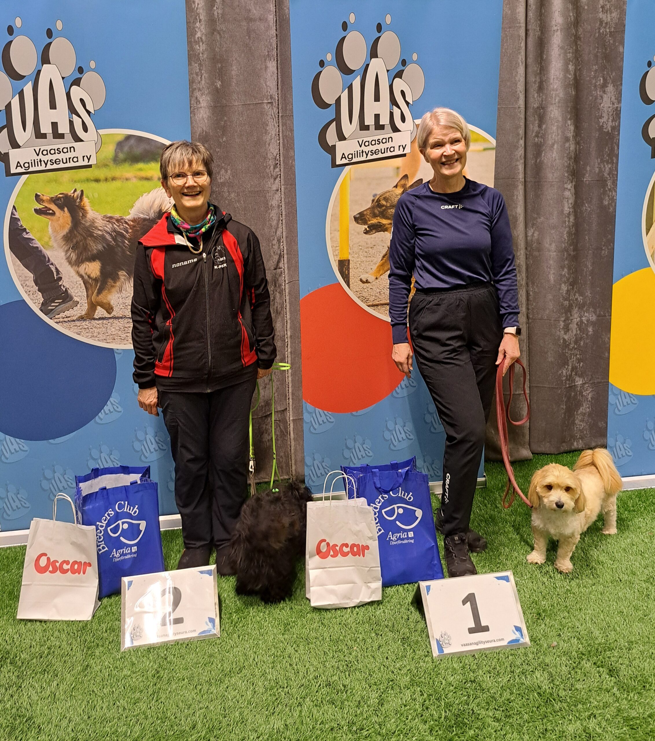 1 lk agilityratojen rotumestaruuskisat 1 sij ”Lola” Snowmoon’s Liinu ja Päivi Rossi 2 sij. ”Frodo” Fargo Z Akacjowej Doliny, ja Jonna Heinola (om. Kaija Männistö)